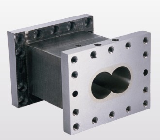 雙螺桿擠出機加工部件的另一個核心部分是機筒,目前大部分采用雙金屬型式,外殼體由45#鋼,經(jīng)鍛造,退火,然后機加工成,內(nèi)部由硬質(zhì)合金加工成“C“型套,由壓力機壓入后,磨加工成。由于直接接觸物料的是硬質(zhì)合金,它具有極高的硬度,因此耐磨性極高,且采用壓入式,因此便于更換,從而利于設備提高使用壽命,降低用戶的成本。
